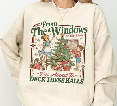From the windows to the walls I’m about to deck these halls on sand hoodie, crewneck, long sleeve or tee
