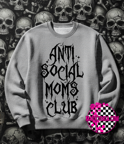 Anti social moms club on grey hoodie, crewneck, long sleeve or graphic tee