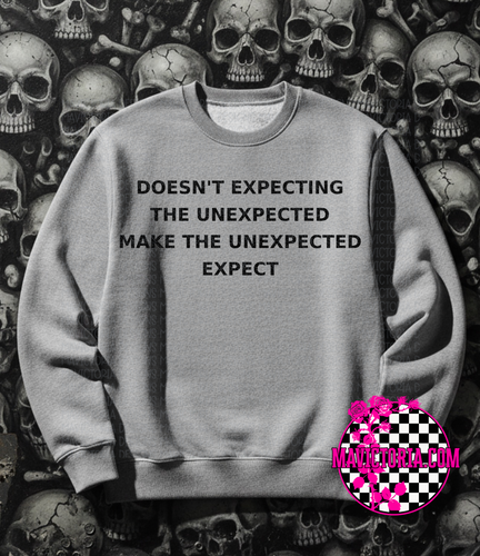 Doesn’t expecting the unexpected make the unexpected expect on grey hoodie, crewneck, long sleeve or graphic tee