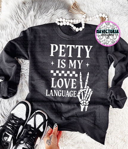 Petty is my love language on black hoodie , crewneck, long sleeve or tee