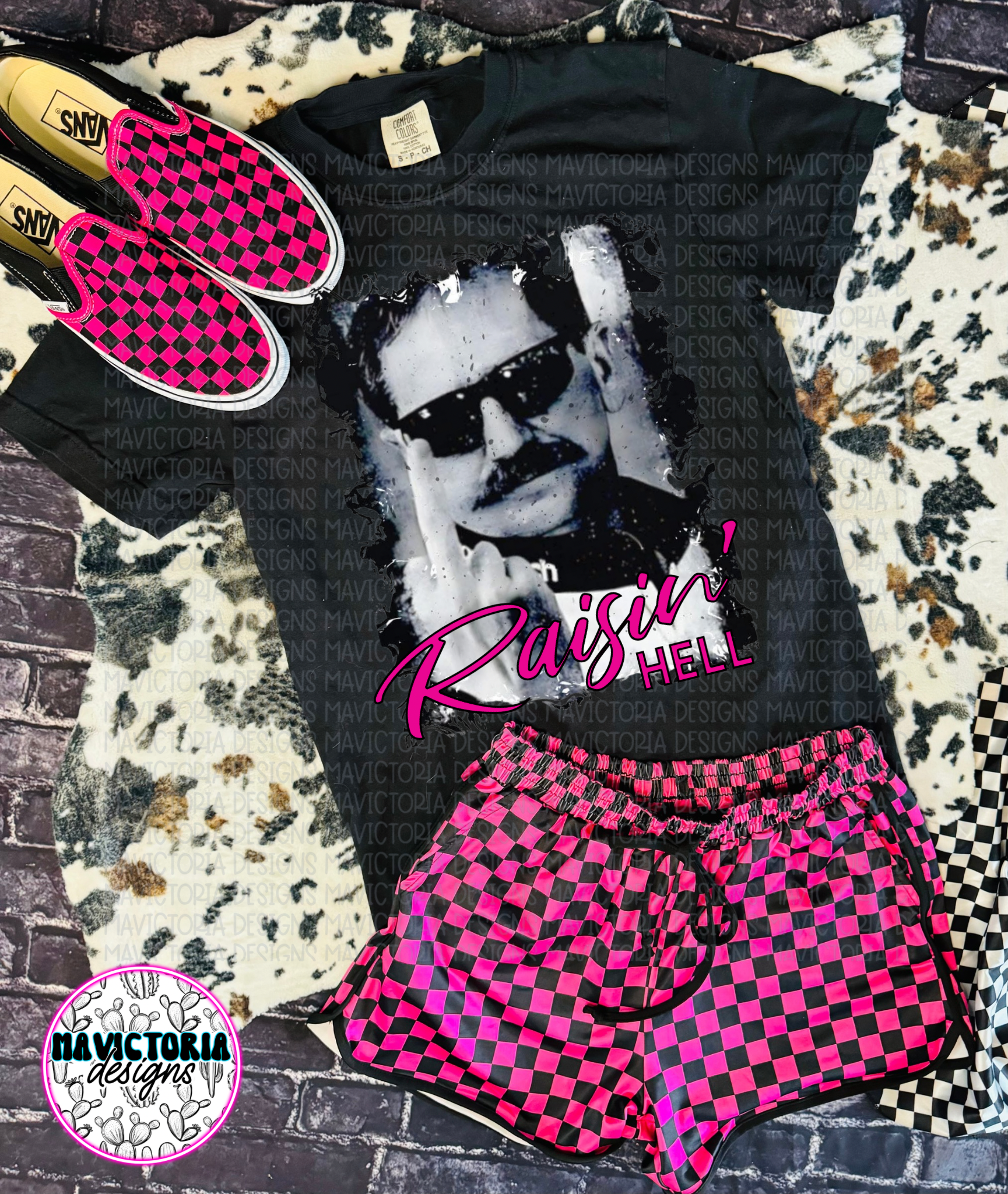 Grey or black Dale middle finger RAISIN’ HELL Graphic tee