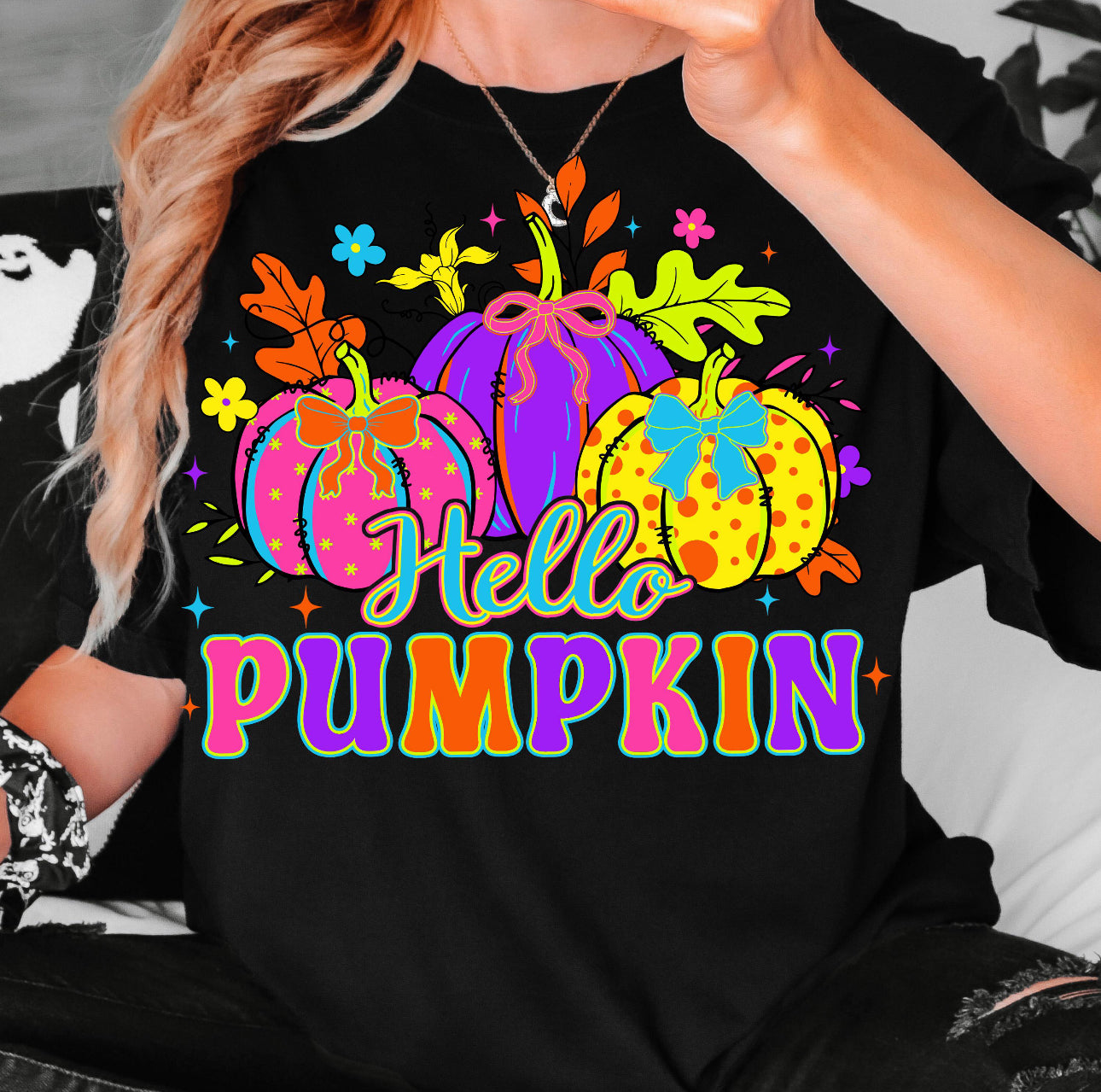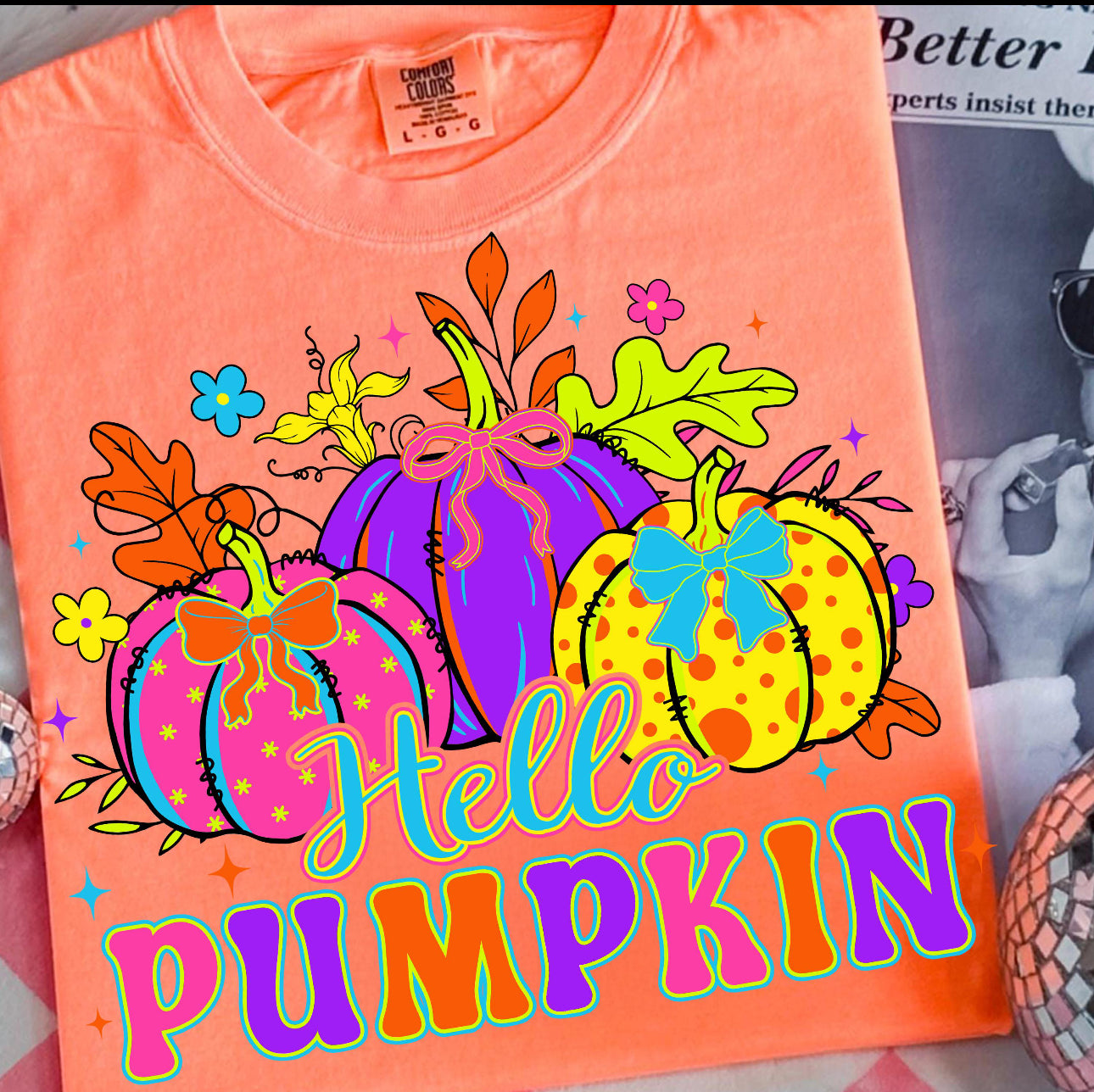 Neon hello pumpkin comfort colors graphic tee (you pick color)e